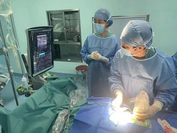患者王师傅,高血压病20余年,10年前确诊脑出血时即发现肾功能衰竭,经过几年的保守治疗,近日病情逐渐加重并出现胸闷气短等心衰症状,需进行肾脏替代治疗,遂来到我院肾内科前来就诊。入院后,我院肾内科主任马增伟第一时间了解了王师傅的情况,诊断为慢性肾衰竭尿毒症明确需接受透析治疗清除水分及毒素改善心功能,王师傅想接受腹膜透析的意愿非常强烈。马增伟主任与施莹副主任综合评估王师傅的病情后,决定为患者行超声引导下经皮穿刺法腹膜透析置管手术。6月15日下午,在施莹副主任带领的于晓艳等肾内科医疗团队共同努力下,成功完成手术,手术过程十分顺利。