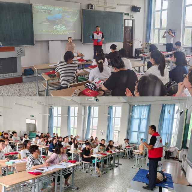 为了落实《齐齐哈尔医学院校园安全工作主体责任落实年行动工作方案》、《齐齐哈尔医学院重大事故隐患排查整治2023行动工作方案》文件精神,积极做好2023年“安全生产月”、“实验室安全月”工作部署,精神卫生学院邀请齐齐哈尔市红十字会国际认证救护员培训讲师、黑龙江省一级培训讲师王明为我院师生开展心肺复苏术、气道异物梗阻处置以及突发灾害情况下的自救互救应急救护培训。