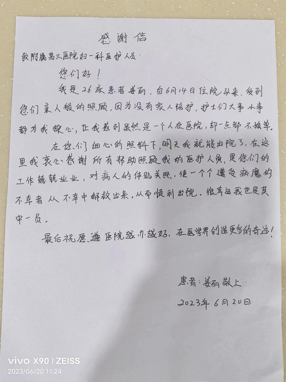 妇一科护理人秉承从细节着手、用情呵护、从心服务的理念,让患者在住院期间切实感受到护士的爱心、细心、责任心,持续拉近护患距离,做一个暖心、患者满意的护理团队,用心去服务,用心去付出,把感情融入平凡的工作中,把满腔热情奉献给热爱的护理事业。
