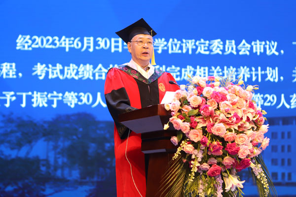 毕业典礼结束后,学院领导为参加典礼的600余名硕士研究生、普教本科生、外国留学生和高等学历继续教育学生授予了学位。