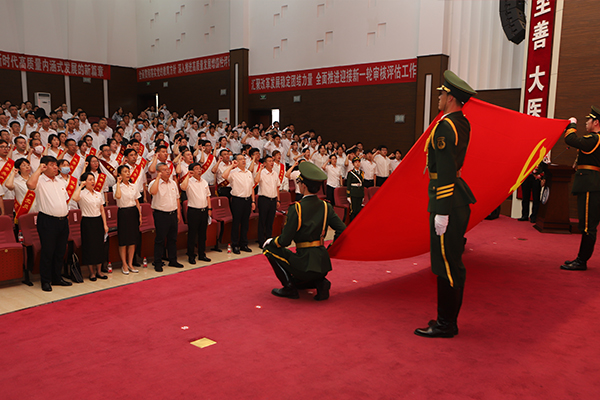 院长、党委副书记赵光主持大会,并强调,全院各级党组织和广大党员要以先进典型为榜样,以正在开展的主题教育为契机,按照“学思想、强党性、重实践、建新功”的总要求,坚持学思用贯通、知信行统一,把习近平新时代中国特色社会主义思想转化为坚定理想、锤炼党性和指导实践、推动工作的强大力量,以蓬勃昂扬的风貌奋进新征程,以追赶跨越的姿态建功新时代,努力实现学院高质量内涵式发展,为早日实现医科大学的齐医梦贡献力量。
