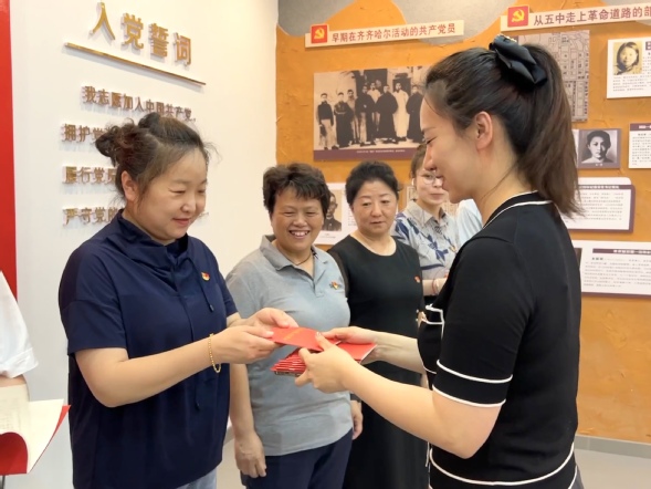 主题党日活动的开展,传递着党的关怀和组织的温暖,进一步增强了党员归属感和责任感,引导党员明初心、守初心、强党性、作贡献。同志们收到“礼物”后纷纷表示,要把党章作为一切行动的指南,深入学习贯彻习近平总书记的重要指示批示和重要讲话精神,强化党员身份意识,充分发挥先锋模范带头作用,不断提升凝聚力和战斗力,为医院高质量内涵式发展贡献更多力量。