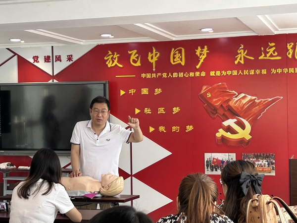 为了保证培训效果,培训团队精心设计了培训计划和授课安排。培训前,王秀清老师将本人制作的《基础生命支持》宣教视频和《心肺复苏(CPR)培训前认知状况网上调查问卷》提前转发给社区参训人员,让学员根据个人时间安排自行学习CPR相关知识,并了解其对CPR的认知和知识掌握情况,使培训更具针对性和实效性。在现场培训中,两位老师从如何进行现场评估及启动医疗急救服务系统,如何正确胸外按压,如何进行开放气道及人工通气等方面,对徒手心肺复苏进行了详细讲解和现场示范。居民们参与热情很高,纷纷踊跃参与学习和操作。