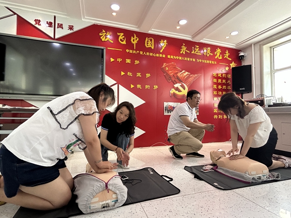 志愿服务进社区,心肺复苏我教你。7月7日下午,学院团委组织教师志愿者走进新时代文明实践中心回民社区,为来自卜奎街道6个社区的30余位居民代表开展徒手心肺复苏培训普及。本次志愿服务特别邀请到“普通高校普及徒手心肺复苏教育课题组”成员——齐齐哈尔医学院团队王秀清、高恒宇2位老师进行现场讲授和示范。学院团委、卜奎街道和社区工作人员一起参加培训。