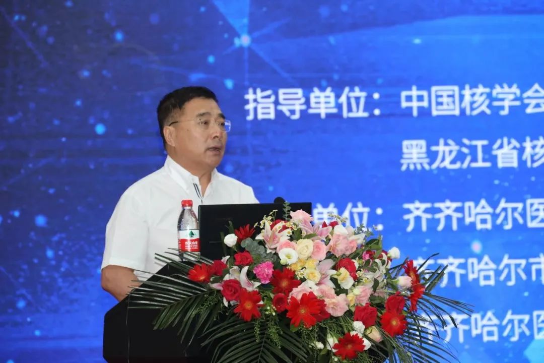 齐齐哈尔医学院医院管理处处长李春旭教授致开幕辞。他强调医疗质量控制是医院的生命线,齐医附属一院核医学科是齐齐哈尔市重点专科、齐齐哈尔医学院临床重点专科、齐齐哈尔市影像医学与核医学领大军人才梯队带头人单位、齐齐哈尔医学会甲状腺肿瘤专委会主任委员单位,在该领域做出突出成绩和贡献。希望齐市核医学医疗质控中心继续强化质量管理和质控工作,确保核医学诊断和治疗的安全和有效性,加强对核医学从业人员及核医学服务流程的质控,推动全市各医院核医学诊疗技术规范的统一,促进完善和改进核医学诊疗质量体系,为提升齐齐哈尔市及黑龙江省核医学整体水平不懈努力。