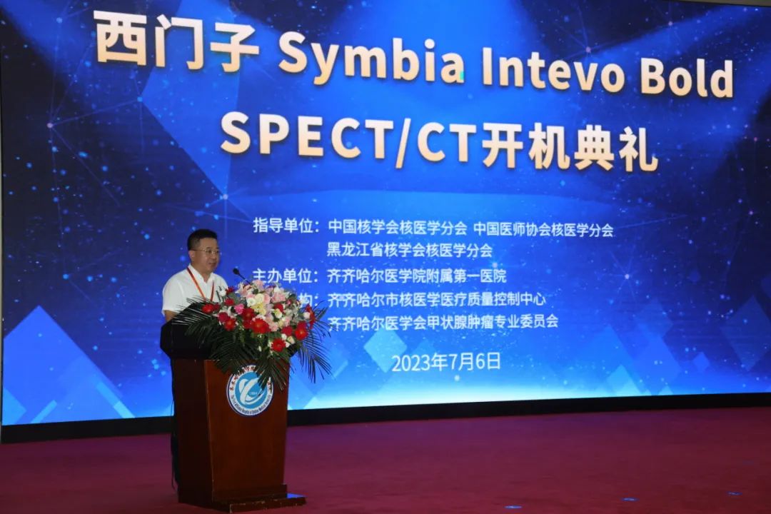 7月6日早8:38分,齐医附属一院“西门子 Symbia Intevo Bold SPECT/CT 开机典礼”在学术报告厅举办并取得了圆满成功。开机典礼由医院党委书记刘晖主持,中国核医学的泰斗级专家,齐齐哈尔市甲状腺肿瘤专业委员会和核医学专业委员会的各位同道,齐医附属一院领导班子成员、科主任、护士长、职能科室科长两百余人参加典礼。