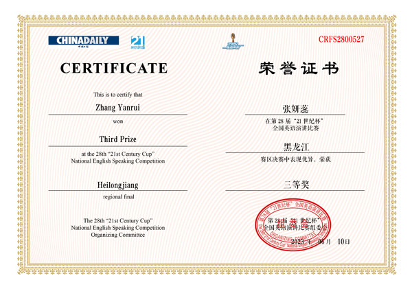6月10日,2023年“21世纪杯”全国大学生英语演讲比赛黑龙江赛区决赛在哈尔滨工业大学落下帷幕。代表我校参赛的2021级口腔3班姚育博同学、2022级药学2班张妍蕊同学不畏强手,凭借流利的语言、标准的发音、敏捷的思维和稳定的发挥,荣获黑龙江赛区决赛三等奖,为学校争得了荣誉。