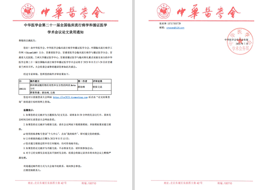公共卫生学院2018级预防医学2班学生宗燕的论文“四种降尿酸药物有效性和安全性的网状Meta分析”,被“中华医学会第二十一届全国临床流行病学和循证医学学术会议”录用为壁报交流。会议由中华医学会、中华医学会临床流行病学和循证医学分会、中国临床流行病学工作网(ChinaCLEN)主办,甘肃省医学会、甘肃省医学会临床流行病学与循证医学分会等单位承办,将于2023年8月17日-20日在甘肃省兰州市召开。本次会议主题为“促进学科发展,提升决策质量”。