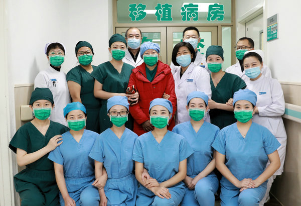 王女士出舱时非常激动,她说遇到移植团队医护人员太幸运了,进入移植病房后,医护人员事无巨细为她着想,做治疗,做护理,做心理疏导,特别暖心和安心。尤其是武立刚院长、丁国旭书记、鲍红光副院长等领导多次到移植病房探望她,让她深感欣慰与幸福,她将永生难忘。