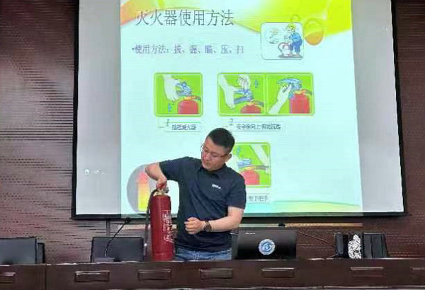 宣讲过程中,保卫科副科长路雪松为学生们详细讲解安全知识,火灾突发的应对措施及灭火器的使用方法,并现场进行了演示,同时指导学生们正确使用灭火器。宣讲现场还播放了火灾发生时的安全警示视频,全面加强宣传教育,不断提升师生的消防安全意识和避险能力。