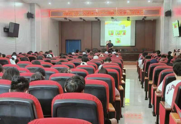 7月15日上午,学生科与保卫科在多功能厅联合举办 “提高大学生消防安全意识”主题宣讲会,150余名学生参会。