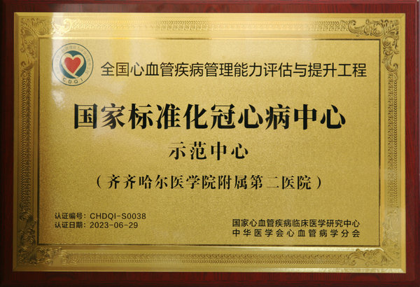 近年来,齐医附属二院心血管内科建设硕果累累,先后通过了国家标准版胸痛中心、心衰中心、房颤中心及市区域性卒中急救地图定点医院的认证授牌。此次能被CDQI认证,授予国家标准化冠心病示范中心,标志着医院心血管内科专病中心建设已达国家标准。