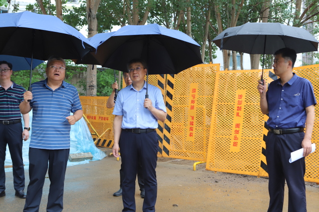 8月3日上午,赵光院长和史耀忠副院长冒雨带领保卫处、学院办公室、后勤管理处、实验设备管理中心、教务处、科研处、学生工作部、研究生处、国际交流合作处、宣传统战部等部门负责人,全面开展了校园安全检查走访。赵光院长一行深入体育馆、体育场、变电所、锅炉房、泵房、学生食堂、本科生公寓、研究生公寓、留学生公寓、燃气使用场所等重点要害部位、校园施工现场和校园公共区域实地走访查看。每到一处,赵光院长均仔细查看各岗位工作开展情况、安全管理情况,现场指出存在的问题和不足,在与工作人员交流时,提醒安全注意事项,提出工作意见建议。