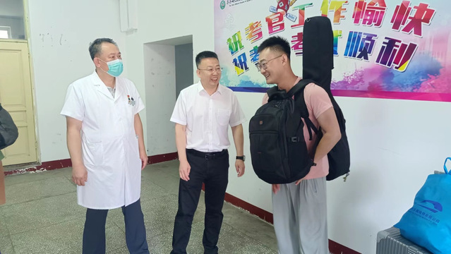 在迎新现场,于海涛副院长详细查看研究生入学登记记录,与报到研究生及家长亲切交流,对现场工作人员表示慰问感谢。随后,他走访了研究生公寓、食堂、自习室,实地查看临床医学专业硕士研究生的学习和生活条件,并对首届临床医学专业研究生提出殷切期望。希望他们在三年的学习生涯中不断提升自己,努力在学术和专业上有所突破;在导师的精心指导下,为附属医院的医疗事业发展尽一份力;学成毕业后,积极为我省及国家的医疗卫生事业贡献力量。