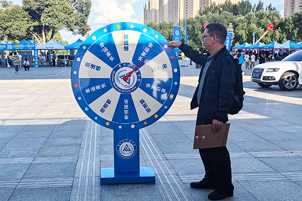 在家长休息区,两个抽奖转盘格外引人注目。今年,学院拟邀请650名家长参加2023级学生开学典礼,家长可通过参与抽奖活动获取参会名额,中奖的幸运家长将收到学院发放的邀请函,现场见证孩子的入学礼。考虑到部分学生体型等特殊情况,学院定制了一批加长床,有需求的学生可向学生公寓申请,学院还暖心的为学生配备了免费床垫。朴实的语言、热情的服务、人性的举措,温暖着新同学,灿烂的笑脸在学生和家长脸上绽放。