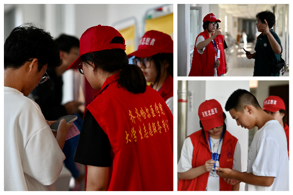 为做好此次迎新工作,学院周密部署、精心组织,成立了接待组、宣传组、注册组、入学教育组、收费组、体检组、保卫组、后勤保障组、公寓管理组、秩序组、绿色通道组、图书借阅组及技术组等13个工作组。在大医广场接待处,各二级学院和研究生院迎新工作人员紧张忙碌着,为新同学办理各种入学手续。校园里随处可见穿着红马甲的迎新志愿者,为新同学引路、拿行李、协助办理入学手续、介绍校园景观等。