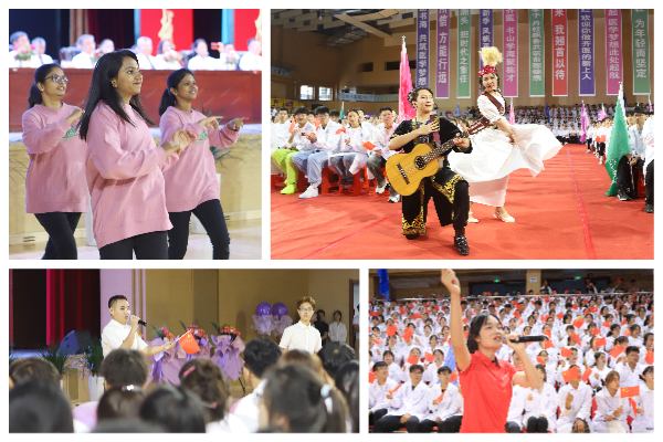 序典中,本科学生代表的歌舞快闪,留学生代表极具异域风情的精彩舞蹈,以及青年辅导员代表赵明和李冬冬夫妇的倾情演唱,迅速点燃会场氛围,师生热情激荡。在国旗护卫队铿锵的脚步声中,全体师生起立,共唱国歌,开学典礼正式拉开帷幕。