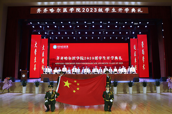 在杏林合唱团领唱的校歌《插上天使的翅膀》歌声中,齐齐哈尔医学院2023级学生开学典礼圆满结束。本次开学典礼在规模、形式、内容等方面都进行了新的尝试和突破,展现了齐医人良好的精神面貌,给全体新同学留下了深刻印象,为2023级新同学上了一堂别开生面的“开学第一课”。