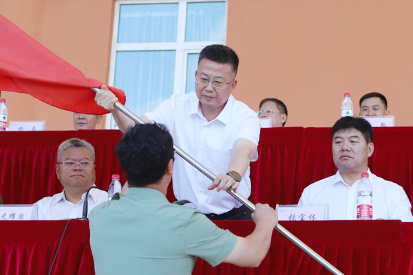动员大会上,军训团副参谋长、武装部副部长王天翔宣读了2023级学生军训团编制序列。于海涛副院长为军训团授旗。史耀忠副院长作军训动员讲话,他向参训的2023级全体学生致以诚挚的问候,向执行本次军训任务的齐齐哈尔武警支队官兵表示衷心的感谢。他指出,军训是大学生涯中的一门必修课程,也是学院教育教学工作的重要组成部分,更是大学生学习军队优良传统、培养艰苦奋斗精神和集体主义观念的大课堂。多年来,学院十分重视新生军训工作,一直把它作为新生入学的第一课,作为学生国防教育的重要环节来安排。为做好本次学生军训工作,他希望全体参训学生吃苦耐劳,经受锻炼,学习优良传统和作风;严格要求,刻苦训练,磨练自己的顽强意志;严守纪律,争当模范,增强文明修养的自觉性。同时要求各职能部门要提高认识,统一思想,从培养高素质人才的战略高度,本着全员育人的理念,全心全意为军训教官和参训学生提供良好的服务,切实把军训的各项服务保障工作落实到位。