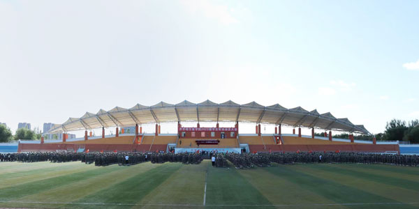 8月28日下午,在雄壮的国歌声中,伴随着五星红旗的冉冉升起,学院2023级学生军训动员大会在体育场举行。军训团政委、副院长史耀忠,军训团团长、副院长于海涛,承训部队首长、齐齐哈尔武警支队副支队长曹洪波出席大会。军训团成员单位负责人、军训教官、2023级全体本科学生和辅导员参加了动员大会。大会由军训团参谋长、武装部部长孙立强主持。