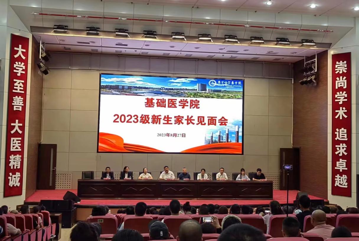 基础医学院于8月27日下午在图书行政楼多功能厅举行了2023级新生家长见面会,近300名新生家长参加。基础医学院党委书记潘洪明、院长林岩、党委副书记吕钢、副院长沈雷、教务科和2023级全体辅导员参加会议,会议由党委副书记吕钢主持。