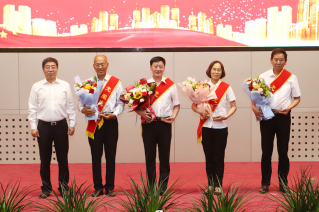 与会师生一起观看了《躬耕教坛 强国有我——庆祝第39个教师节》宣传短片,欣赏了充满深情的诗朗诵《是老师 是学生》。伴随着雄壮的国歌声,表彰大会正式开始。学院院长、党委副书记赵光讲话,学院党委副书记张可勇主持大会。19个教育教学工作先进集体、30名统招本科教学管理先进个人、26名教育教学工作先进个人、25名统招本科教学管理优秀见习带教教师,4个科学研究工作先进集体、35名科学研究工作先进个人、10名第二届优秀硕士研究生导师,39个“三全育人”先进集体、99名“三全育人”先进个人受到命名表彰。学院副院长史耀忠、丛明宇、毕红霞、于海涛分别宣读表彰决定并为获奖代表颁奖。会议还进行了退休教职工荣休仪式和新入职教师宣誓。在温馨的音乐声中,学院党委书记顾长虹为退休教职工代表颁发了纪念品,并献上了鲜花。随后,10名新入职教师庄严宣誓,志愿成为一名光荣的人民教师,热爱祖国,忠诚党的教育事业,遵守国家法律法规,履行教书育人的神圣职责,引领学生健康成长,做到有理想信念、有道德情操、有扎实学识、有仁爱之心,为国家富强、民族振兴、人民幸福而努力奋斗。