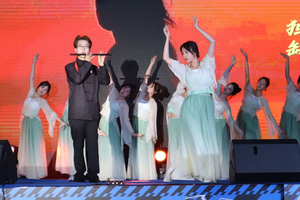 一曲《兰亭序》,融传统文化、小提琴演奏和歌舞于一体,将观众带入那群贤毕至、环境幽雅的兰亭集会,特别是最后歌手现场书法展示校训“大学至善 大医精诚”赢得了阵阵喝彩;《有我》以情景式诗朗诵的形式,演绎了当代齐医青年对强国建设、民族复兴的热切回应,饱满的情感、优美的音色、精巧的构思让人意犹未尽;舞台剧《觉醒》勾勒出百年前进步知识分子和热血青年群像,对全体同学进行了一场生动的历史教育,激发了同学们精忠报国的豪情壮志;小品《荆轲刺秦王》、古典舞《雨涧春行图》、歌曲串烧、乐队表演激情洋溢、精彩纷呈,展现了当代青年的青春活力和昂扬姿态。