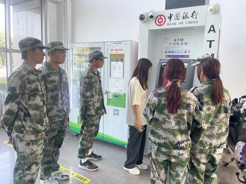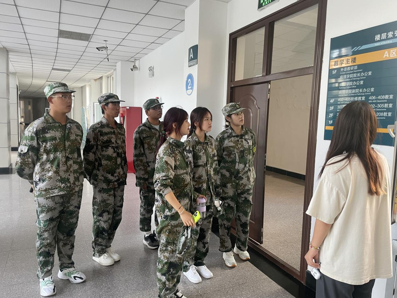 学生干部为新生介绍电子设备使用和教学楼整体布局