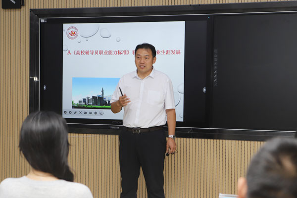 王敬国副教授结合自身成长和发展,从《高校辅导员职业能力标准》与高校辅导员职业生涯发展、高校辅导员职业生涯发展探索、高校辅导员职业能力发展探索、案例分享等方面,与全体辅导员进行了交流。讲座内容既涵盖了辅导员队伍建设发展的政策法规,又列举了详实的学生教育管理工作案例,给全体辅导员上了一堂既有理论高度又有实践分享的辅导员职业生涯课程。