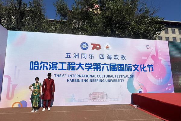9月23日,哈尔滨工程大学举办了“五洲同乐、四海欢歌”第六届国际文化节。学院两名印度籍留学生作为代表,向来自五大洲超过70个国家的800余名留学生和中国学生展示了印度的婆罗多舞,共同参与了这场汇集世界各国美食、歌舞、文化体验的国际文化盛宴。