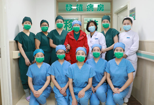 齐医附属二院移植团队与顺利出舱患者王女士合影留念