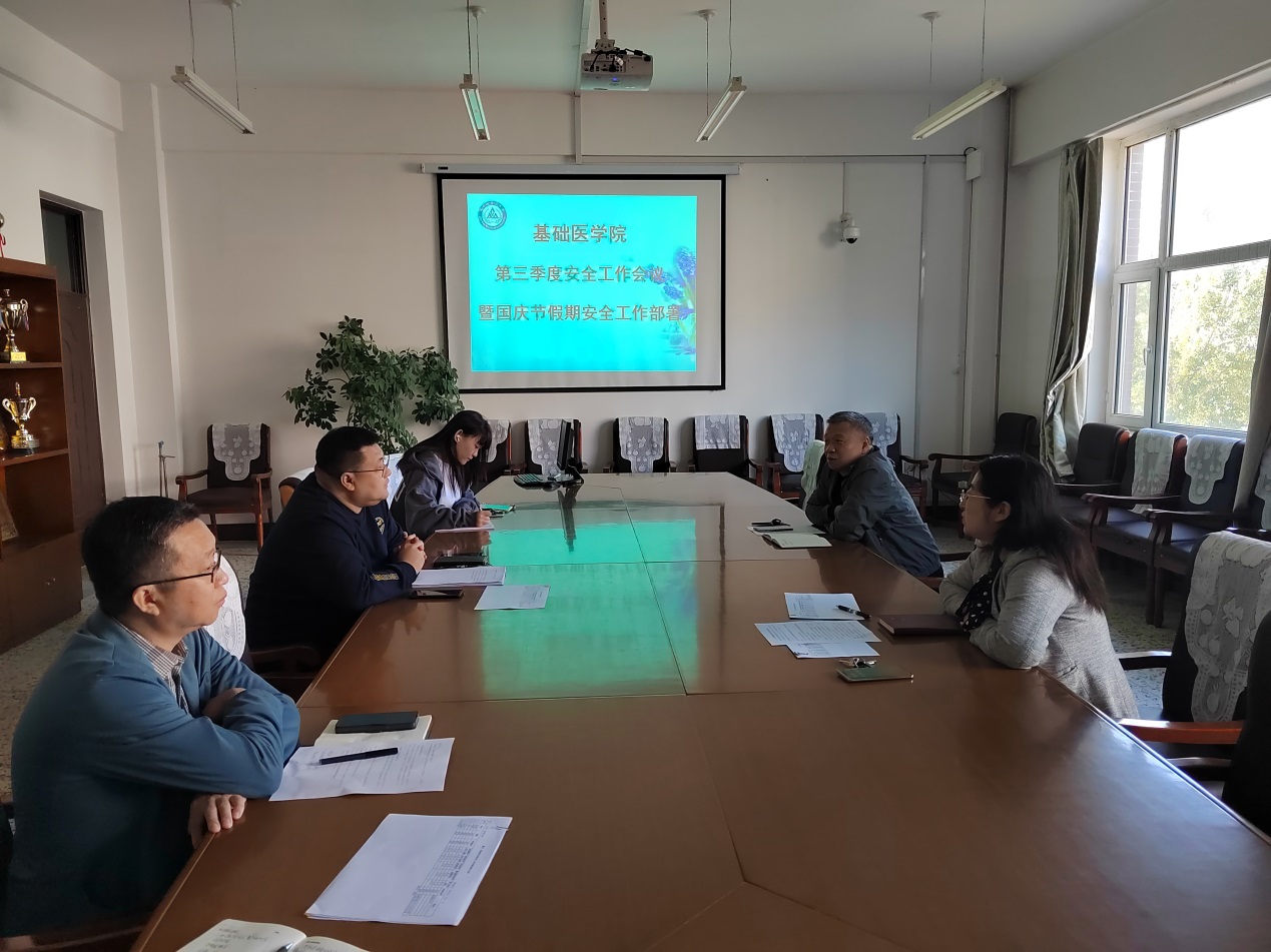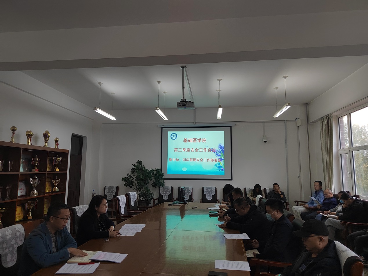 中秋、国庆将至,为做好节日期间安全管理工作,排除各种安全隐患,保证我院各项工作的顺利进行。基础医学院分别于9月20日、27日,逐级召开了第三季度安全工作专题会议暨“中秋、国庆”假期安全工作部署会。