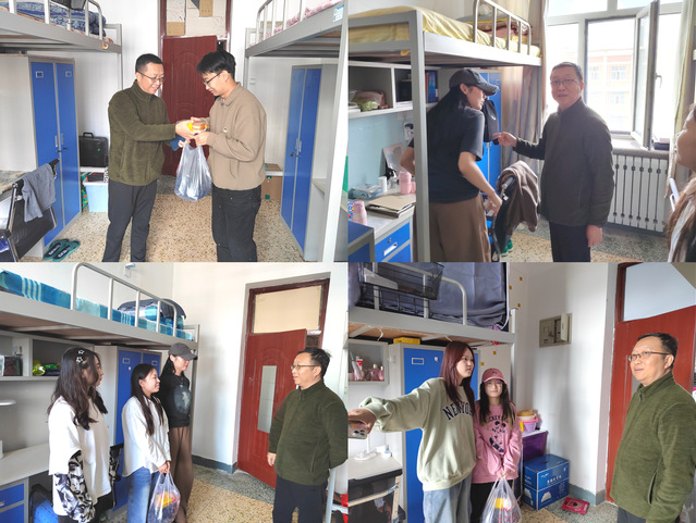 为确保基础医学研究生度过一个安全而愉快的中秋节和国庆节,9月28日,基础医学院沈雷副院长、研究生管理科李鹏辉科长及研究生管理人员深入学生寝室开展中秋节日慰问与安全检查、教育工作。