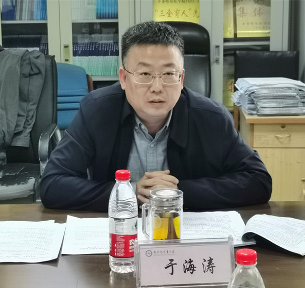 于海涛副院长作总结发言。他首先详实解读了审核评估的内涵,然后对临床教学基地迎评工作提出指导意见。同时,对临床教学基地组迎评工作提出三点要求:一是各临床教学基地要提高责任感和紧迫感,认真落实新一轮本科教育教学审核评估标准,全面构建“三全育人”“五育并举”的新格局;二是各临床教学基地要制定详实的迎评工作方案,务必将迎评工作责任精准到人,确保及时、有效、到位、高质量完成迎评的各项工作;三是审核评估工作时间紧、任务重,临床教学工作人员要大力发扬“自强不息、甘于奉献”的齐医精神,为学院的高质量内涵式发展做出应有的贡献。