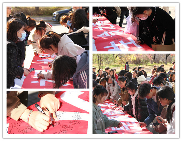 学院后勤管理处积极开展了条幅签名、播放粮食安全宣传短片等活动,引导广大师生树立正确的粮食观,活动得到了学院师生的积极响应。学院党委书记顾长虹、院长赵光、纪委书记李龙珠也参与到条幅签名活动中。