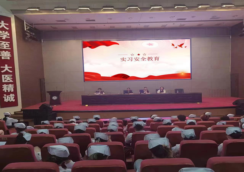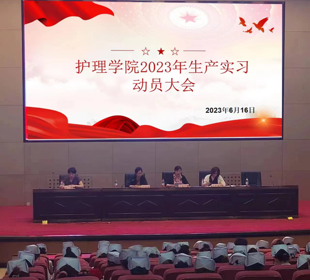 为进一步抓好实习环节的教育管理,使学生明确实习目的,端正实习态度,更好地完成实习任务,6月16日中午护理学院在多功能厅组织召开了2023年生产实习动员大会。护理学院党总支副书记付桂华、副院长李桂玲、副院长马秀梅、教务科科长唐美玲、学生工作办公室主任王坤、辅导员逄丽红及2020级全体实习学生参加会议。会议由护理学院党总支副书记付桂华主持。