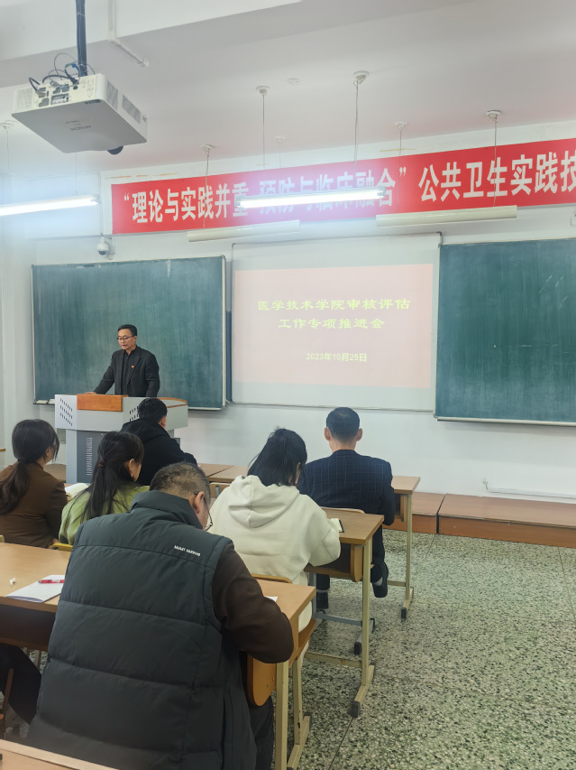 10月25日,我院在部系楼AB201教室召开教育教学审核评估工作推进会,会议由学院党委书记孙贺主持,全院教职工参加。
