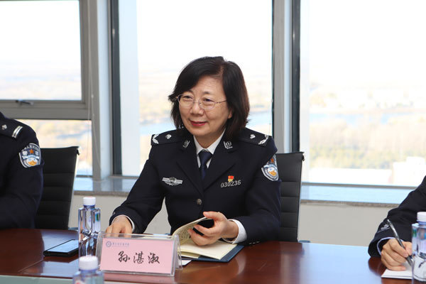 于海涛副院长对孙湛淑局长一行来院调研表示热烈欢迎,并就市公安局出入境管理局多年来对学院的大力支持和帮助表示感谢。随后,王敬春就留学生的教学管理、住宿管理、学生安全等方面进行了详细汇报。孙湛淑对我院的留学生管理工作给予高度评价,并对学院成功录取5名留学生硕士研究生以及汉语水平考试(HSK)考点成功落户齐齐哈尔医学院表示祝贺。