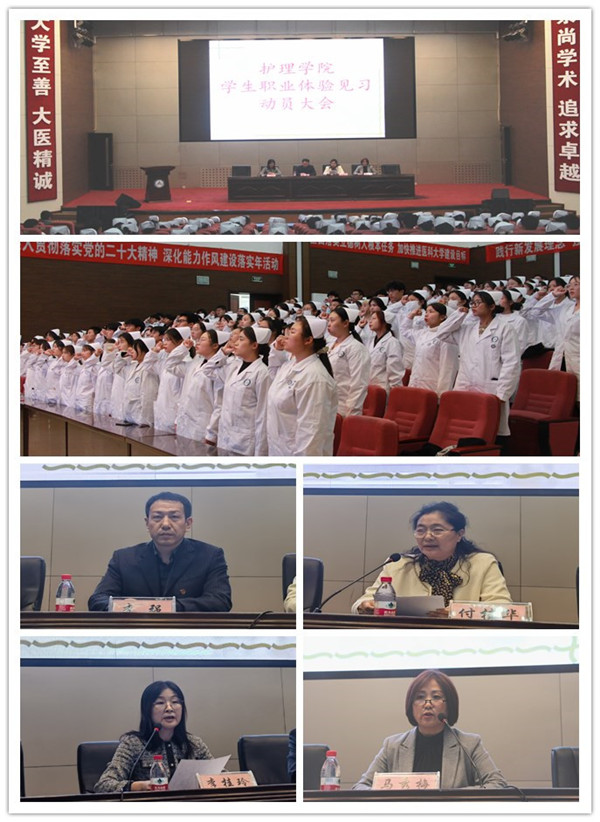 10月25日下午,护理学院在图书行政楼二楼多功能厅召开2023级学生职业体验见习动员大会。护理学院领导班子及2023级全体新生300余人参加了会议,会议由护理学院副院长马秀梅主持。