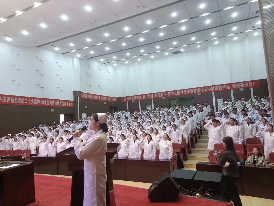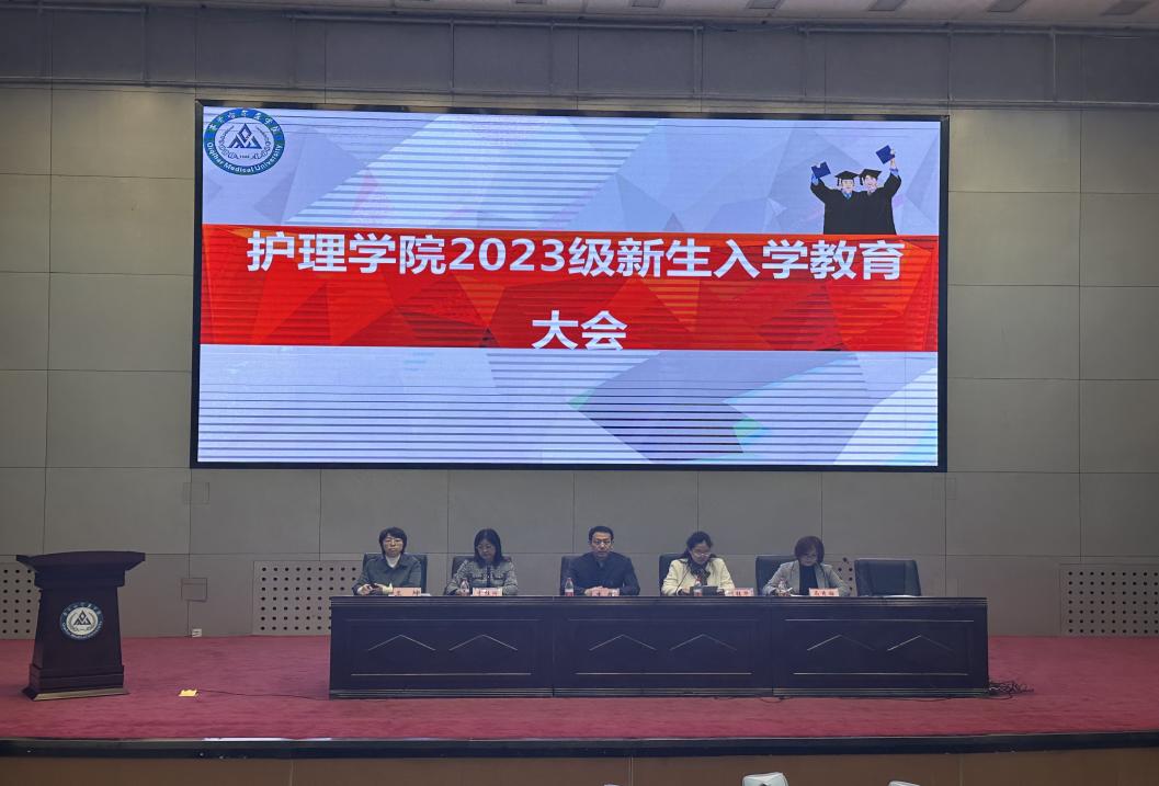 会上,2023级新生龙萱作为新生代表,表达了对专业的向往和未来大学生活的憧憬。2023级新生杨紫婷带领全体新生进行了“南丁格尔”誓言宣誓;之后马秀梅副院长介绍了专业培养方案及相关要求;李桂玲副院长介了绍护理硕士专业学位授权点基本情况;王坤主任对安全及学生管理工作制度相关内容进行了介绍。最后,李强书记对全体新生进行专业思想教育,从学院和护理学院历史发展的角度出发,带领全体新生走进学院、了解学院,感受学院深厚的历史底蕴,增强新生对学院的归属感、认同感和自豪感。李强书记叮嘱同学们要及时转变身份,把大学当作再出发、再拼搏、再奋进的新起点,做德智体美劳全面发展的社会主义建设者和接班人。