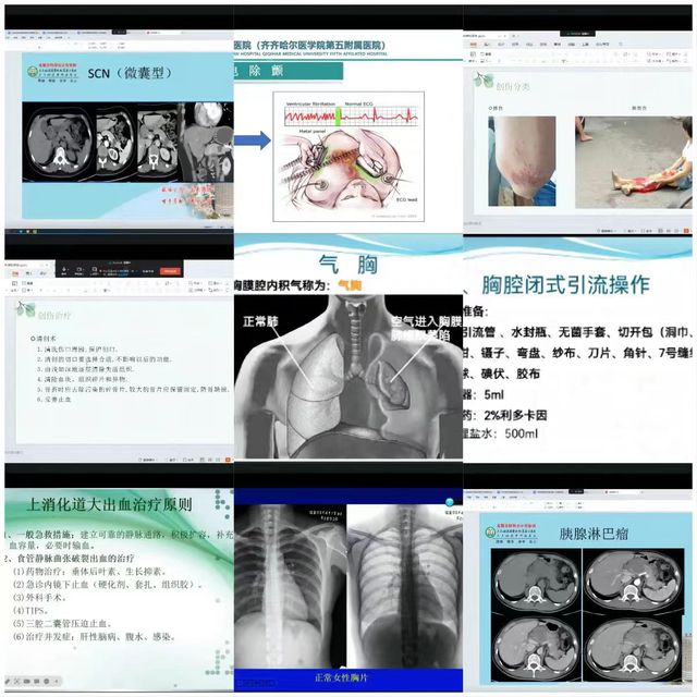针对决赛环节和内容,临床教学中心精心制定了集训线上培训计划,由附属第五医院牵头,遴选附属第三、第五医院优秀教师围绕X线、CT、MRI、超声阅片、心肺听诊、实验室检查、心电图判读及临床技能操作等内容对选手进行培训,并组织参赛学生进行虚拟仿真实验项目自主练习。在培训教师的精心指导下,参赛选手于赛前充分巩固了知识与技能。