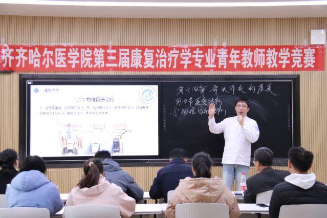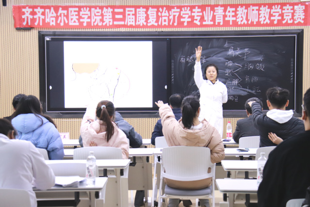 11月1日,齐齐哈尔医学院第三届康复治疗学专业青年教师教学竞赛在部系楼A-B101教室举行。医学技术学院党委书记孙贺出席比赛并讲话,竞赛由医学技术学院副院长张浩主持。本次大赛评委由学校教学督导组专家、校级教学竞赛的获奖教师、附属第二、三医院康复科主任等5人及2021级康复治疗学专业的5名学生评委共同担任。