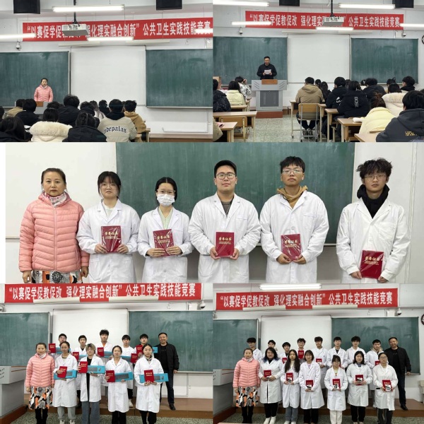 此次技能竞赛以“以赛促学促教促改,强化理实融合创新”为主题,共设置四站内容,包括试剂配制及滴定操作、心肺复苏、疫源地消毒、室内小气候测定等。各参赛队在规定时间内完成两个站点的实践操作,依据总成绩产生最终排名。37支参赛队经过激烈角逐,评选出一等奖2组、二等奖4组、三等奖6组、优秀奖8组。学工办主任吴润滨宣读了获奖名单,并为获奖队伍颁发了荣誉证书。