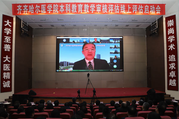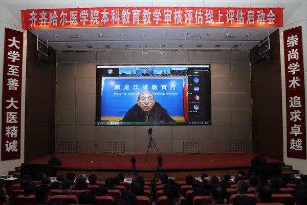 11月8日上午,学院在图书行政楼二楼多功能厅召开本科教育教学审核评估线上评估启动会。专家组组长、华中科技大学党委副书记马建辉,专家组副组长、哈尔滨医科大学原副校长曹德品等专家组成员,黑龙江省教育厅二级巡视员丁哲学以线上形式出席会议;学院领导班子成员,各职能部门负责人,各教学单位书记、院长,附属第一、二、三医院书记、院长,教师和学生代表等线下参会。会议由学院院长、党委副书记赵光和专家组组长马建辉共同主持。