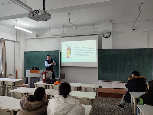 本次培训特别邀请齐齐哈尔宣安消防知识咨询服务中心肖小刚部长做专题讲座。肖部长通过对近几年火灾案例的分析,向全体师生讲授了火灾的危害性、火灾成因、类型以及面对突发火灾事故应如何逃生等消防安全知识,并向全体师生展示了防烟面罩、灭火器、灭火毯等消防工具的使用方法。