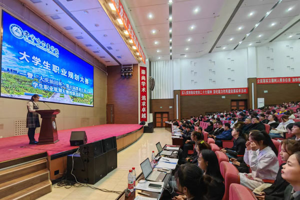 11月20日,学院大学生职业规划大赛决赛在图书行政楼二楼多功能厅举办。招生就业处处长齐占朋致词,来自各二级学院及附属医院的22位选手进入校级决赛,300余名师生代表现场观摩。