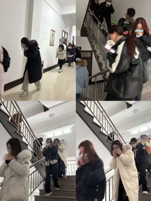 随后,组织学院全体教职工及研究生开展了消防安全疏散演练,以演促防,筑牢消防安全屏障。在演练过程中,全体师生用湿毛巾捂住口鼻,低姿行进,避免吸入有毒烟雾,按照预先规划的路线有序撤离。