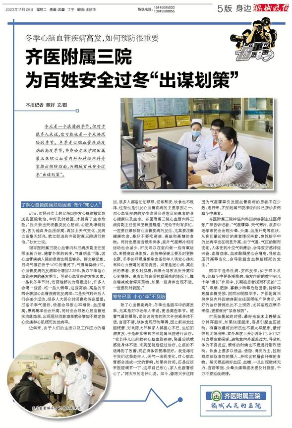如今,像陈大爷这样因为气温骤降引发脑血管疾病的患者不在少数,连日来,齐医附属三院神经内科已接诊多例脑卒中患者。