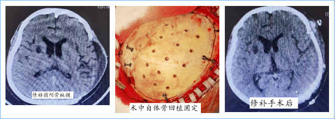 待病人度过危险期,康复期予以自体颅骨回置修补,减少异物排斥反应,维持正常颅压,还病人正常完整的颅脑结构。