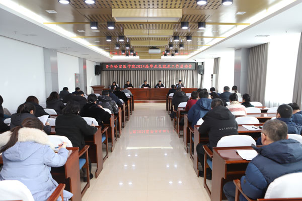 会上,招生就业处处长齐占朋通报了学院2023届毕业生就业情况,解读了《就业工作考核及激励管理办法》《2024届毕业生就业工作实施方案》,并对下一阶段的工作进行了布置。全科医学与继续教育学院单红娟向与会人员介绍了住院医师规范化培训情况。武装部部长孙立强宣读了2024年征兵事宜并布置了相关工作。2023年就业工作先进单位代表药学院党委书记丛凯、附属第二医院副院长刘波、附属第六医院学生工作负责人李振宇,分别分享了2023届毕业生就业工作心得,为更好地促进2024届毕业生就业工作做好了前期铺垫。